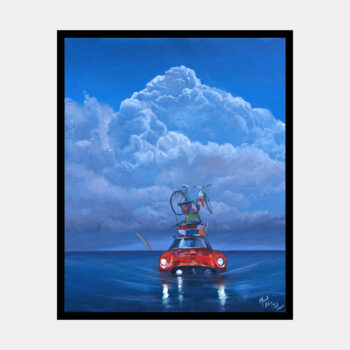 Lolos malerier er visuelt slående – ofte med dramatiske skyformationer, mættede farver og et nærmest filmisk lys. Hans motiver rummer både skønhed og forfald – fra forladte objekter, der synker i vandet, til menneskets forsøg på at navigere en verden i forandring. 🌍🎨