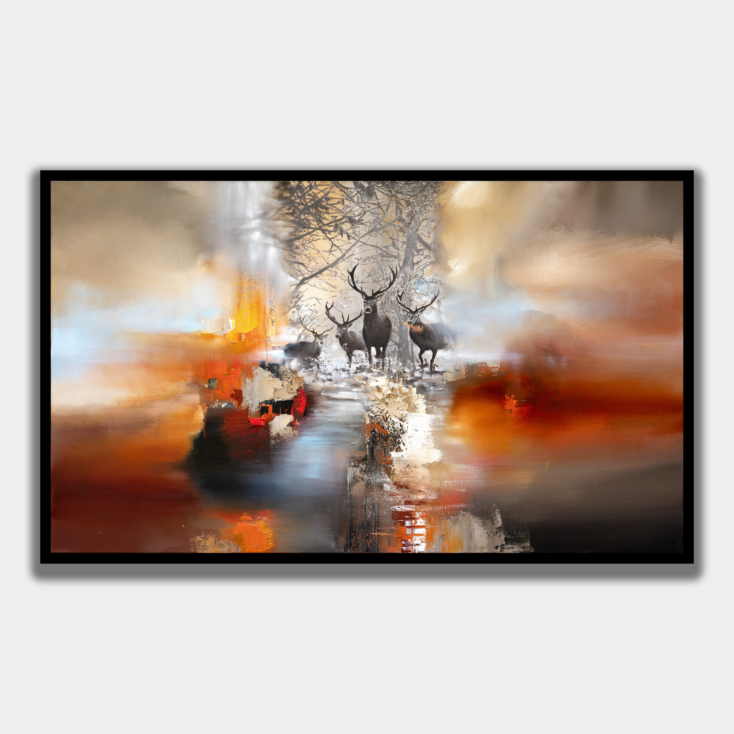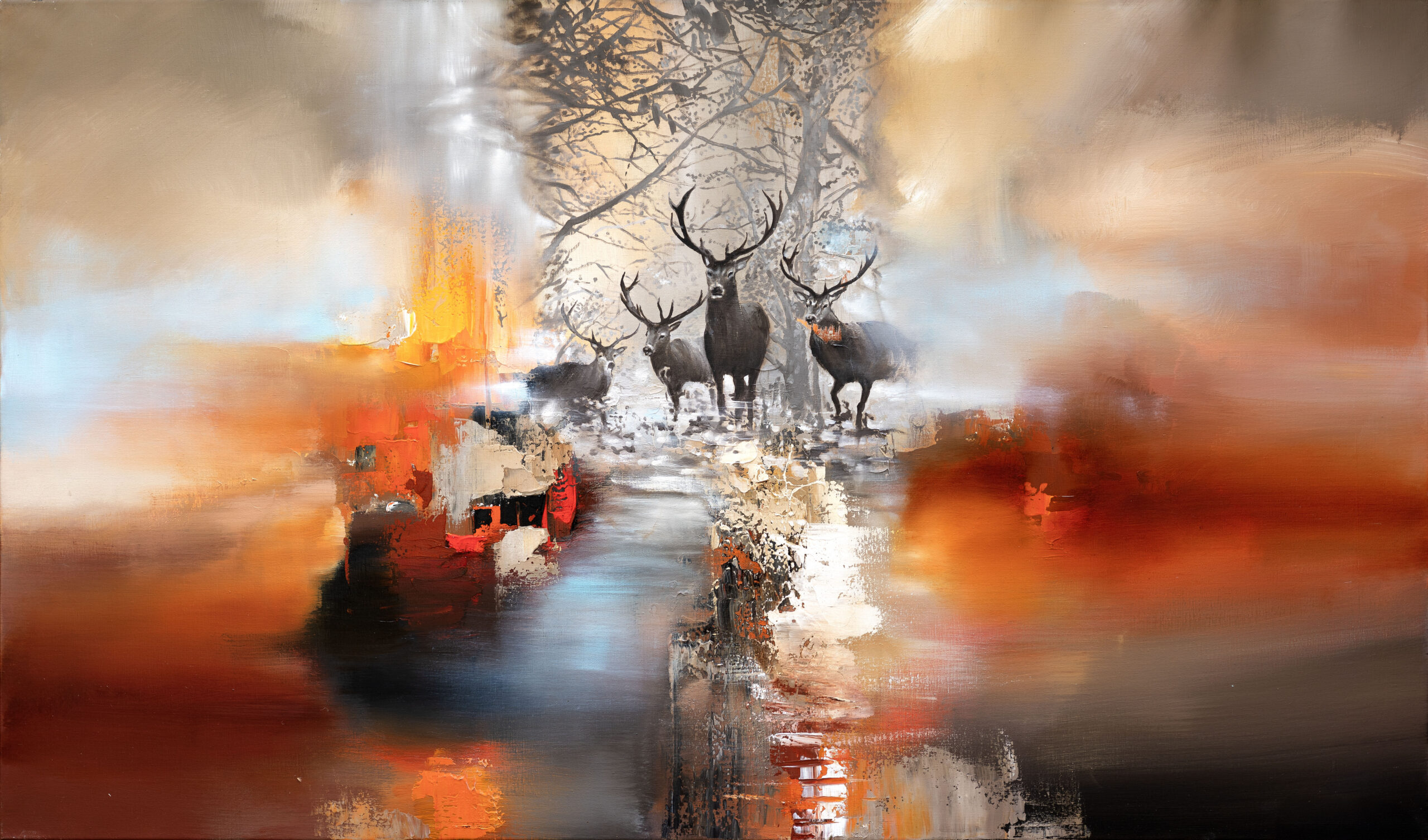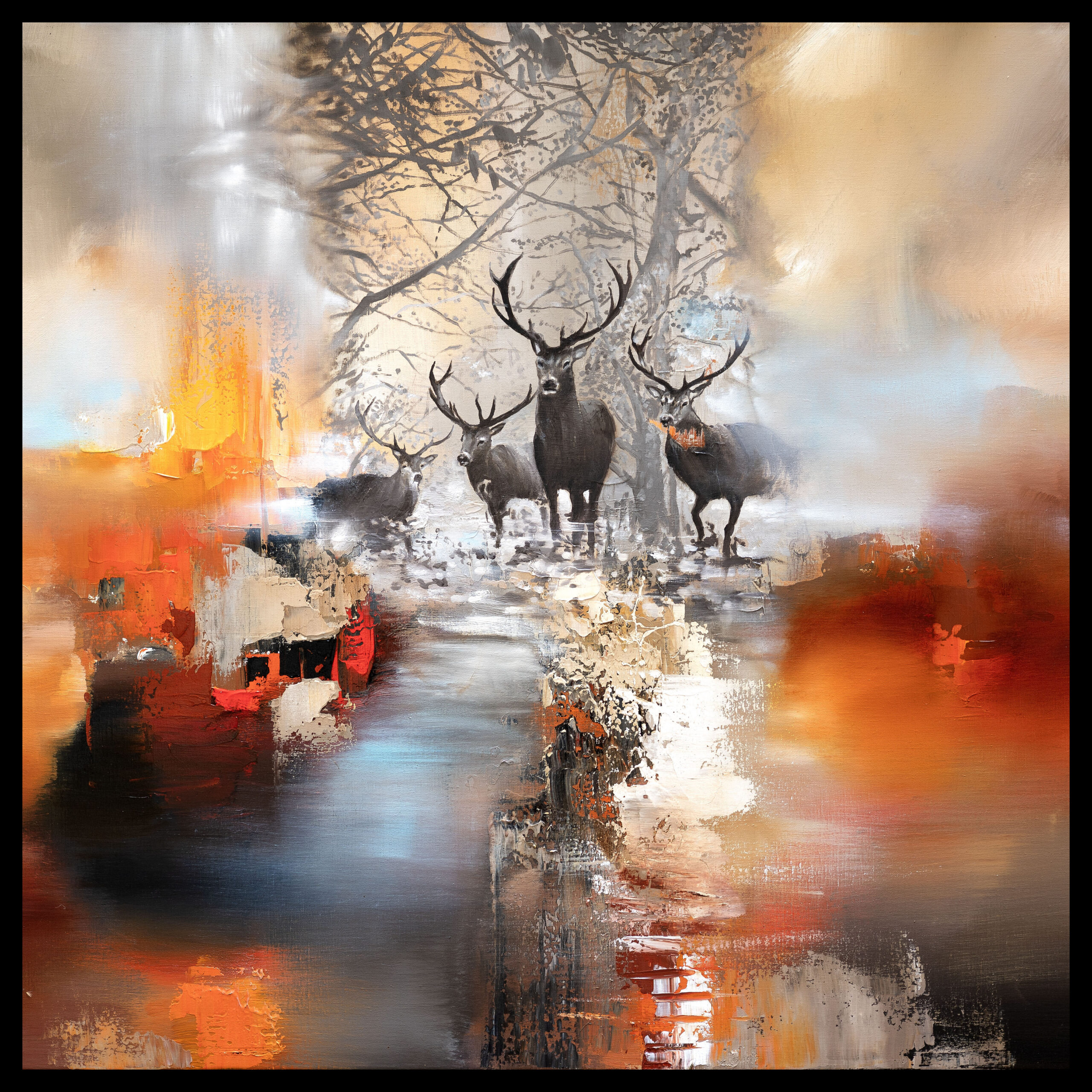 Glødende varme møder kølige flader. Farverne bevæger sig langsomt i lag og skaber en stemning af ro, opmærksomhed og let spænding. Guardians of the woods giver plads til fordybelse – et billede, man kan vende tilbage til igen og igen.