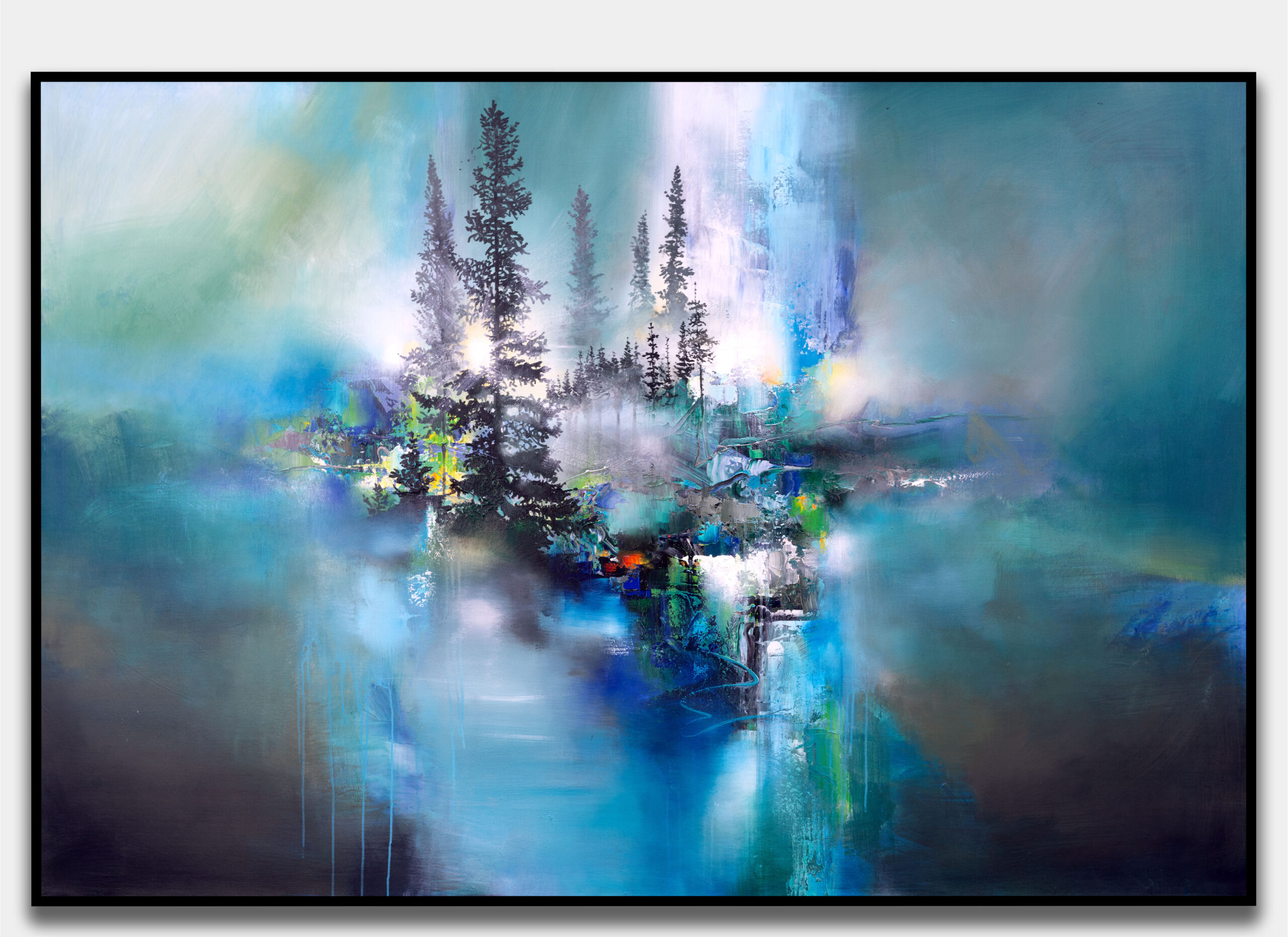 I dette værk kan du gå på opdagelse i den abstrakte verden og finde elementer af natur – lys og mørke mellem azurblå og grønne farver fra den danske natur.